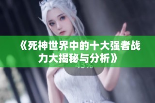 《死神》作为一部经典的日本动漫,其丰富的角色设定和复杂的战斗体系吸引了众多粉丝。作品中,众多角色展现了极其强大的战斗能力,然而其中的强者们更是让人叹为观止。为了深入探讨《死神》世界中的战力,不妨来看看十大强者的战力揭秘与分析...